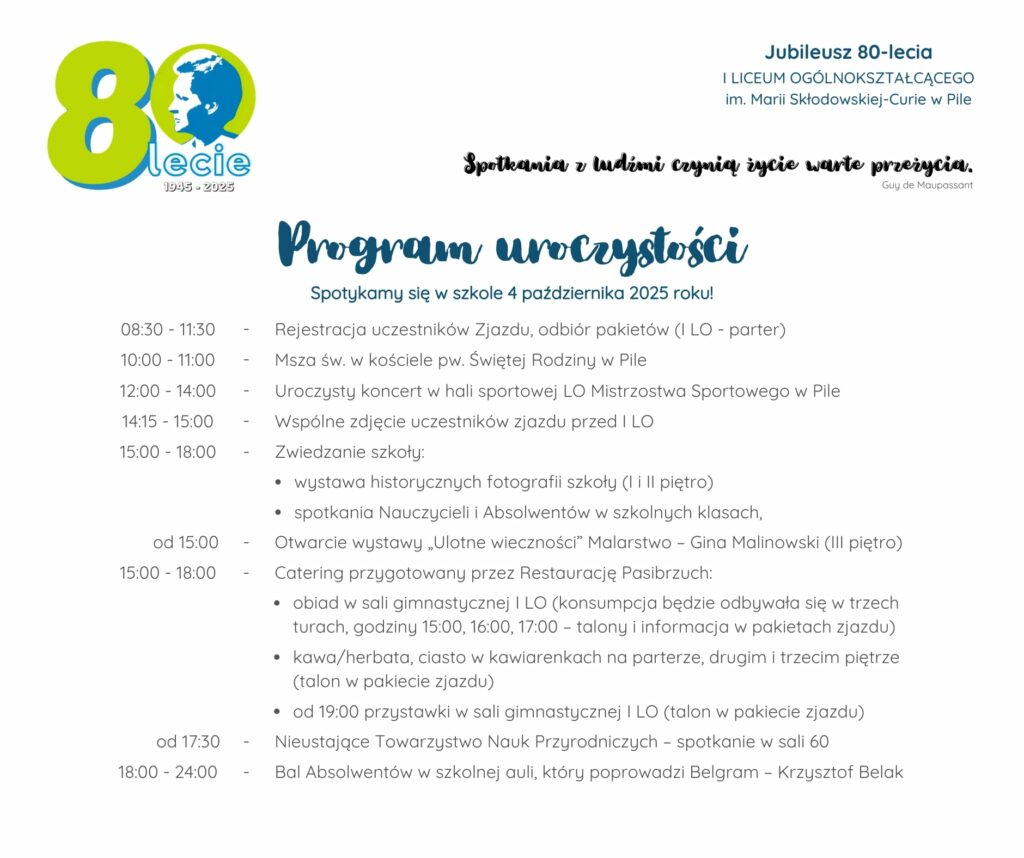 Formularz rejestracyjny na Zjazd Jubileuszowy 80-lecia został już zamknięty. Zapisy przyjmuje już tylko sekretariat szkoły- tel.67 351 74 70 lub e-mail: sekretariat.pola@asta-net.com.pl