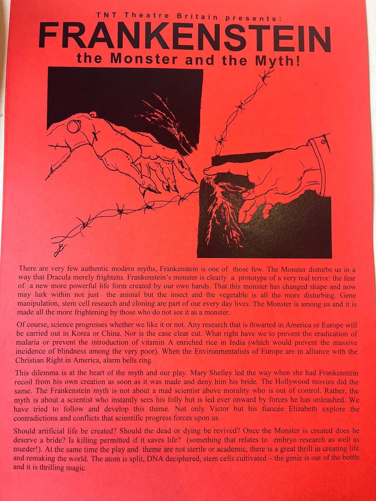 Victor Frankenstein, młody naukowiec, przekracza granice ludzkich możliwości, tworząc sztucznie istotę z martwych ciał. Jednak przerażony efektem swojej pracy, porzuca stworzenie. Odtrącone przez społeczeństwo, potwór, inteligentny, wrażliwy, ale samotny szuka sensu życia, akceptacji… i zemsty.